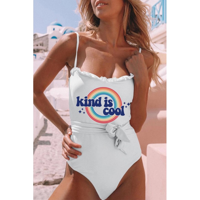 Kind Is Good Rainbow Print Spaghetti Strap One-piece Swimsuit