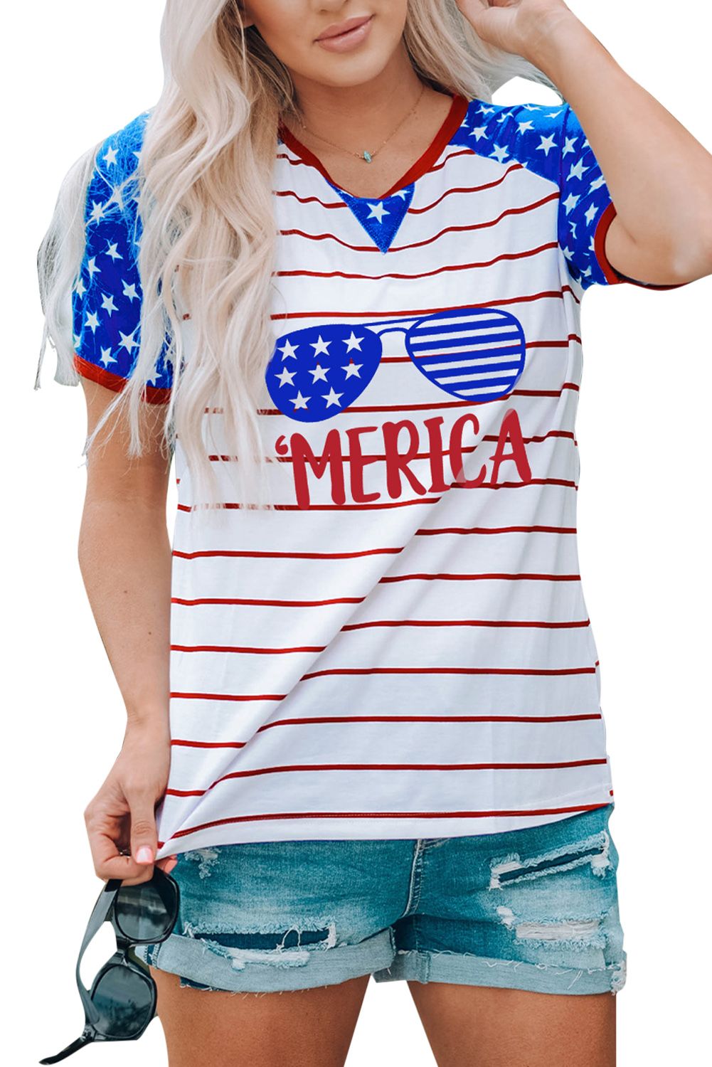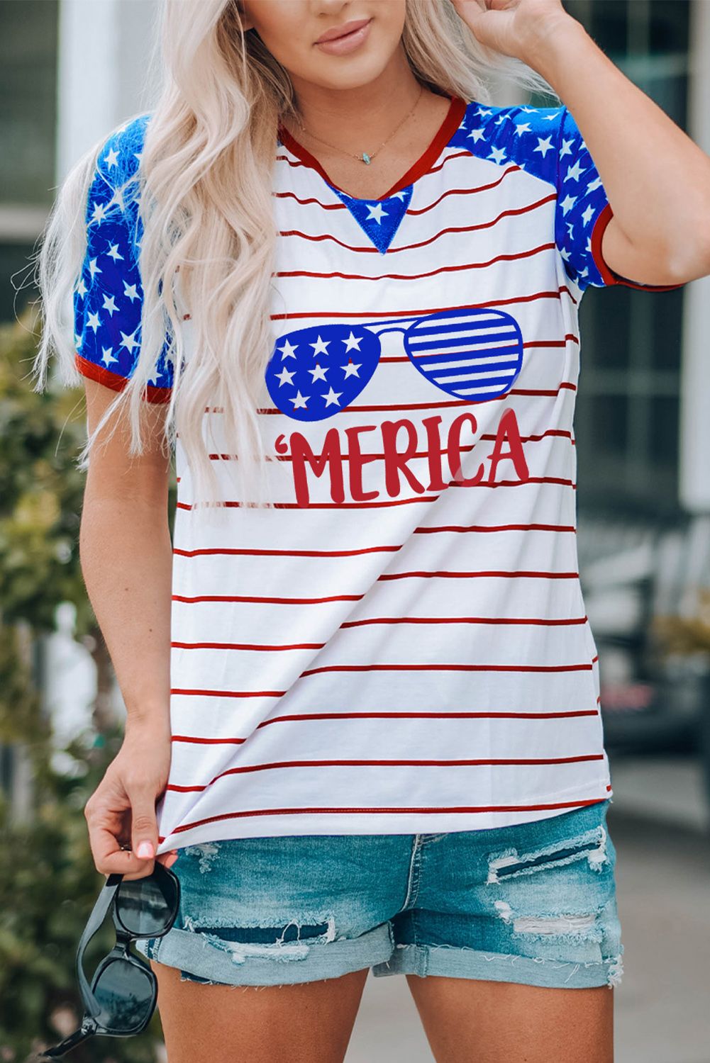 AMERICA Flag Sunglass Graphic Print Short Sleeve Tee