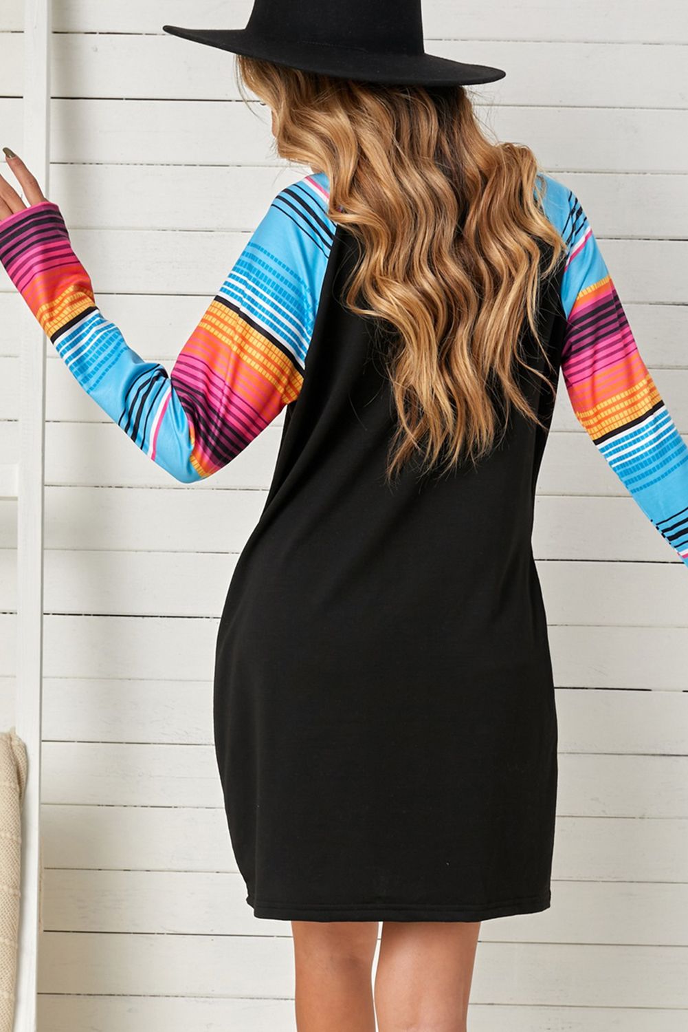 Sunflower Leopard Print Striped Long Sleeve Shift Mini Dress
