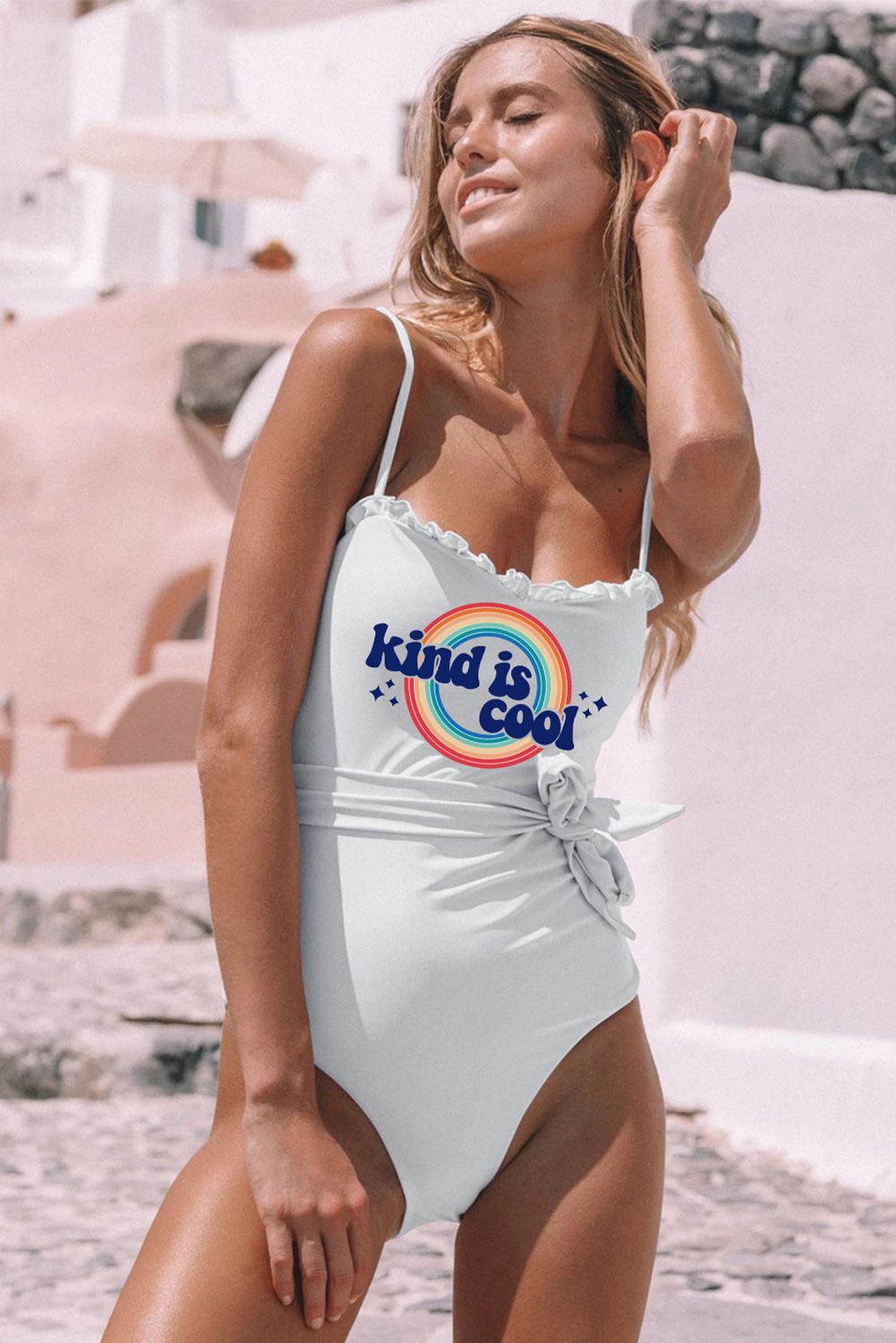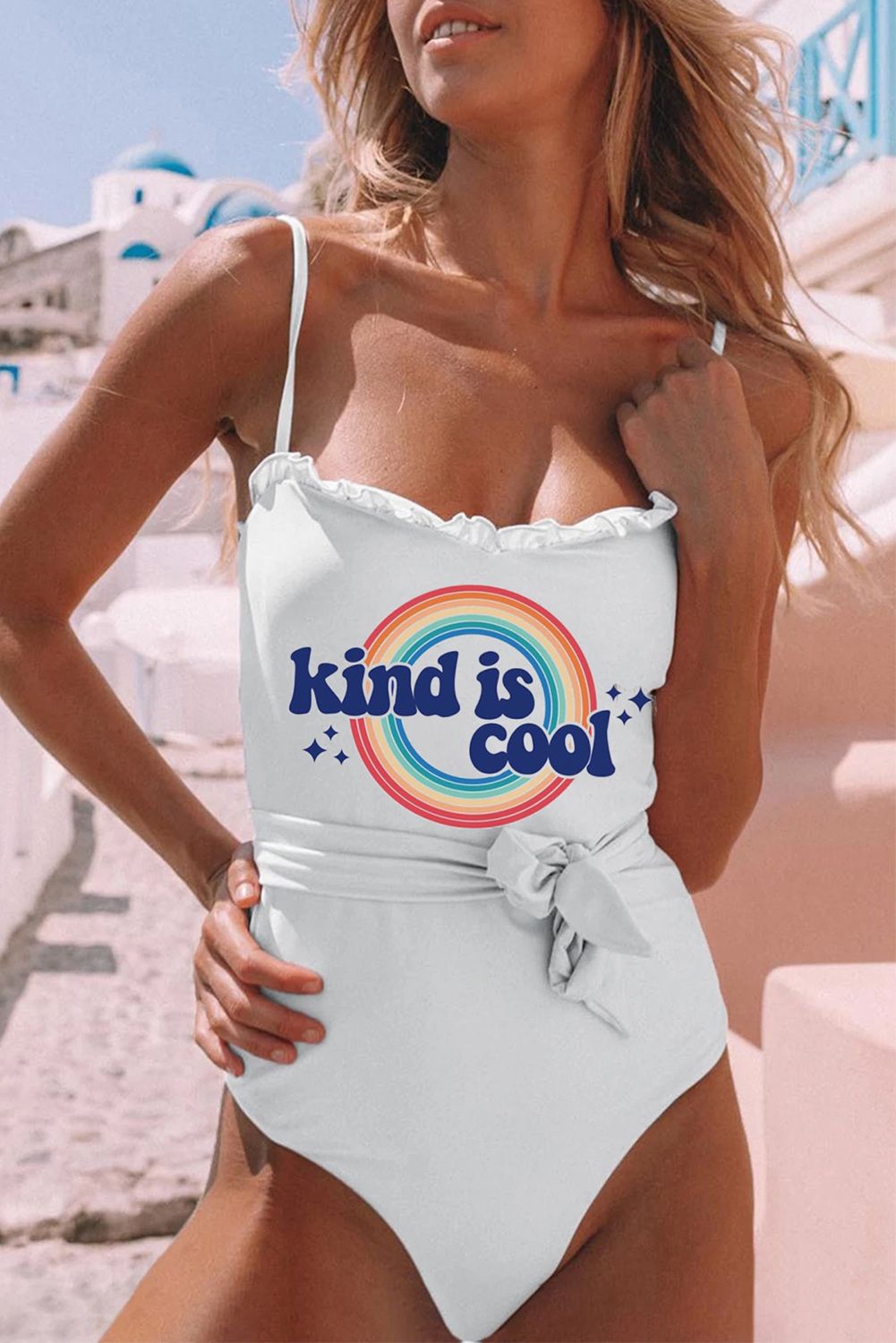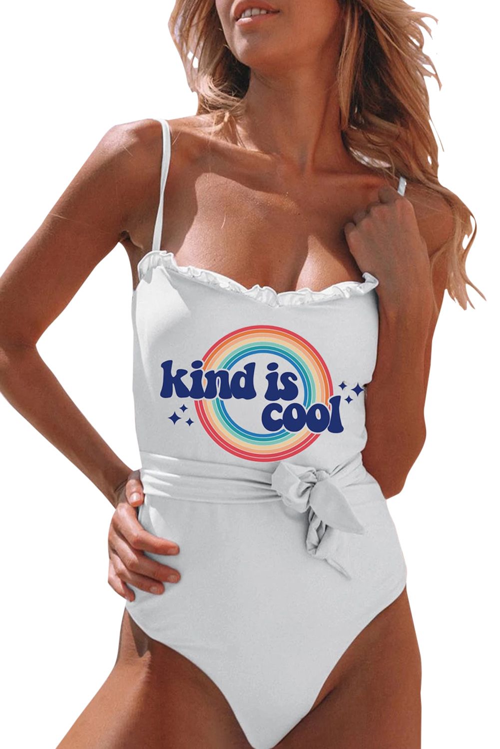 Kind Is Good Rainbow Print Spaghetti Strap One-piece Swimsuit