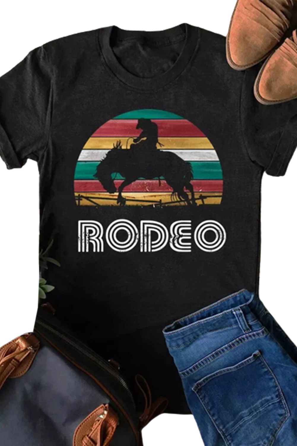 Black Rodeo Graphic Print Short Sleeve Graphic Tee